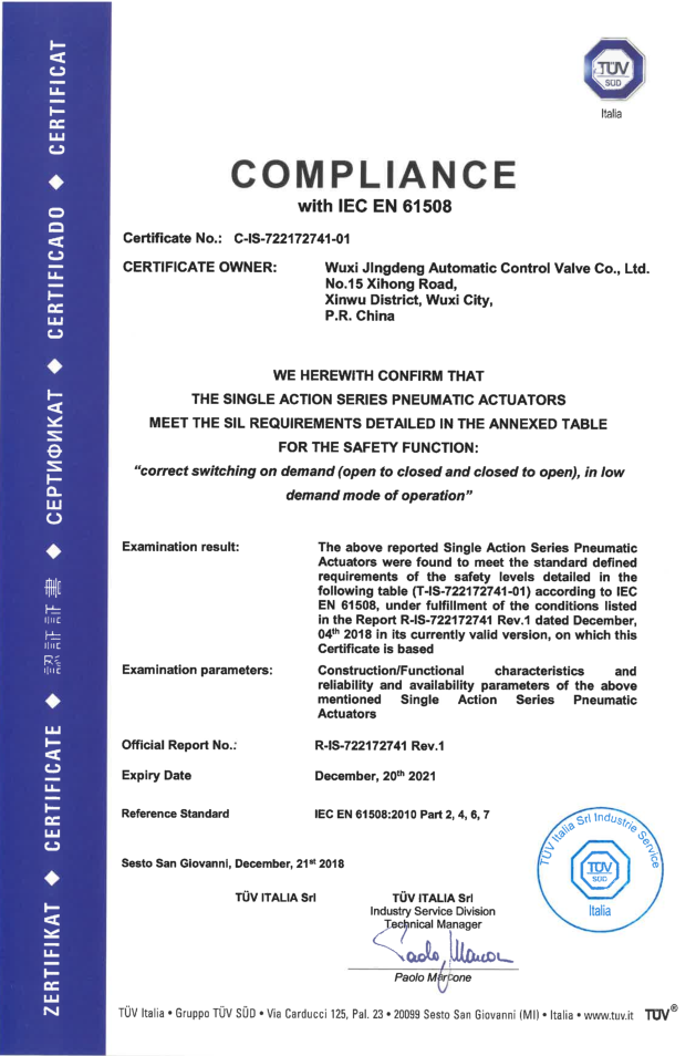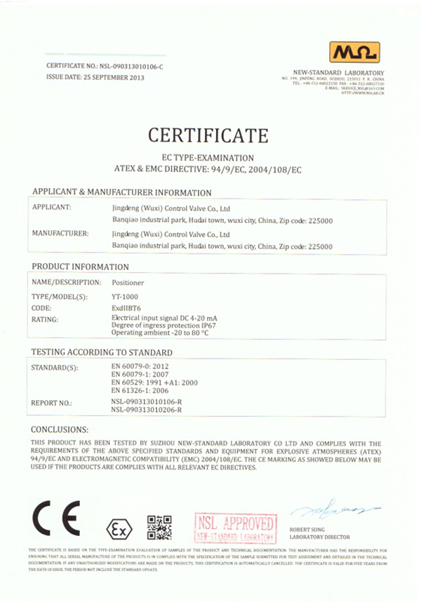 • 氣動(dòng)執行器CE認證